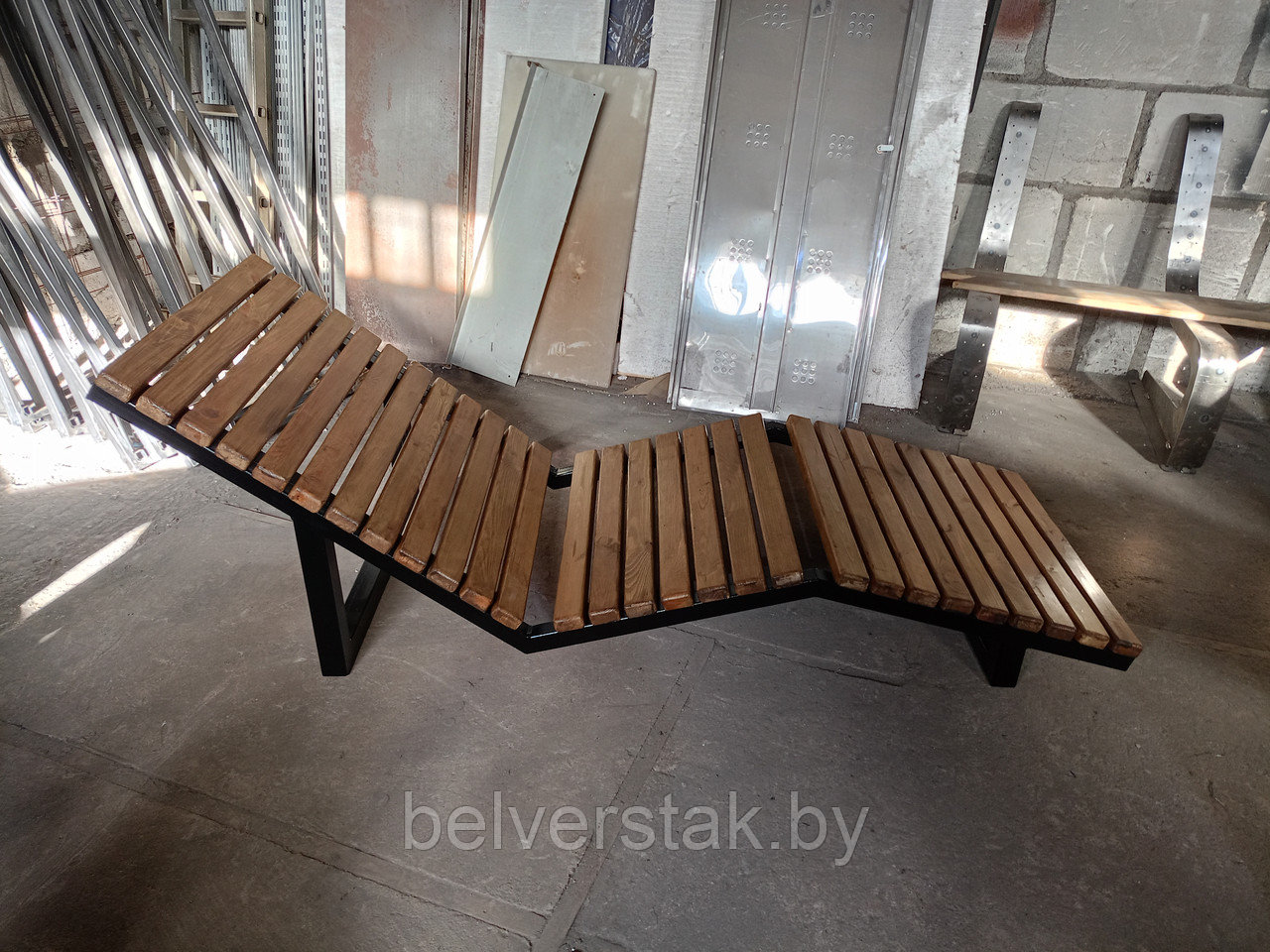 Каркас изготовлен из стальной трубы с надежным покрытием, сиденье – деревянное (сосна, обработана защитно-декоративной пропиткой).